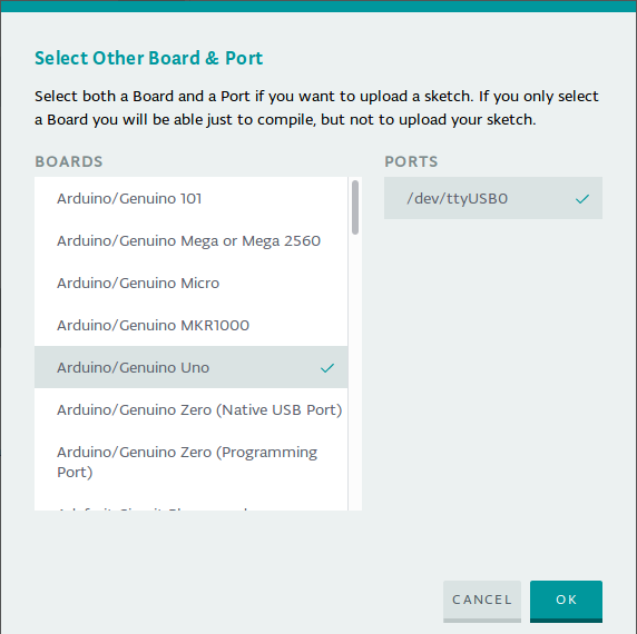 Si seleccionamos "Select other board & port" nos aparecerá la siguiente ventana donde seleccionaremos nuestra placa y nuestro puerto:
