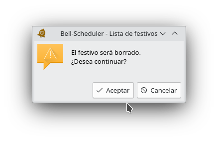 Se mostrará un cuadro de diálogo para confirmar la acción. Si se acepta la fecha será borrrada de la lista de días