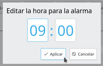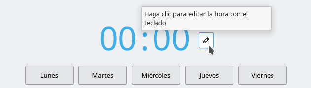Para editar la hora de reproducción se puede utilizar el ratón. Si se prefiere haciendo clic en el botón correspondiente se puede teclear la hora