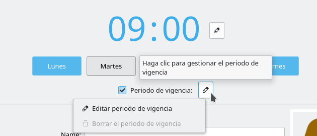 Para editar este valor se usará un formulario similar al utilizado para establecer el momento de inicio