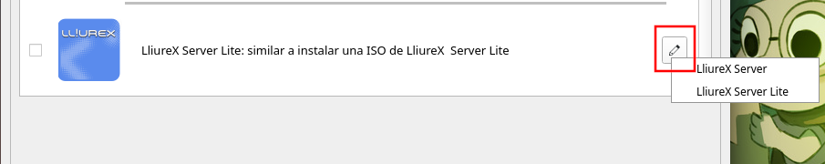 • Servidor Lite: seria equivalente a instalar una ISO de Servidor-Lite de Lliurex (similar al servidor completo pero sin las aplicaciones educativas). En este caso a los metapaquetes ya instalados en el sistema se añadirá el metapaquete lliurex-meta-server-lite
