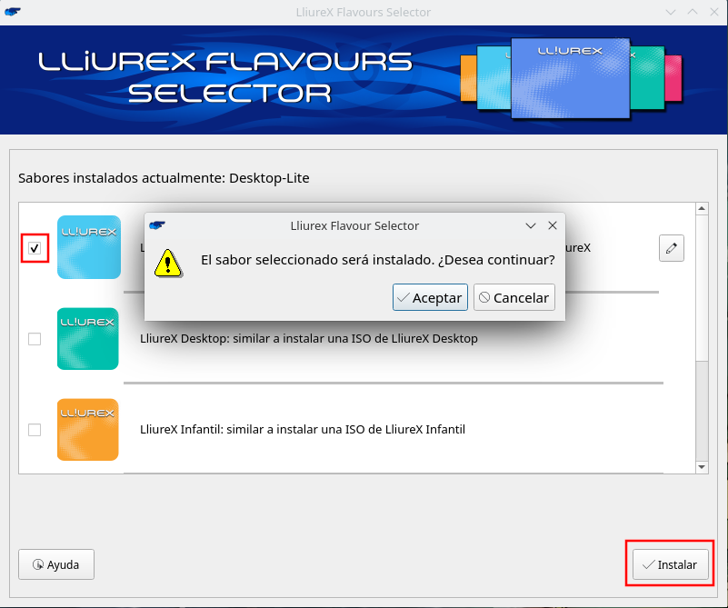 Cambiar sabor en LliureX