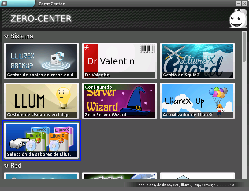 Una vez seleccionado, se muestra una ventana mediante la cual podemos acceder a la herramienta Selección de sabores de LliureX (pestaña Sistema).