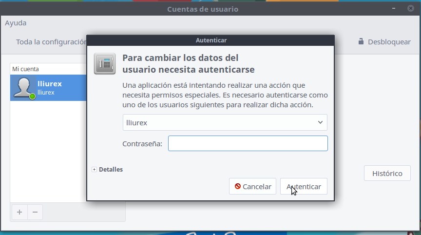 - A continuación se ejecutará la siguiente instrucción: sudo unity-control-center user-accounts