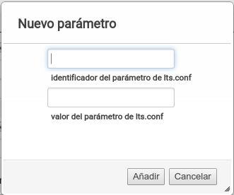 Además, si poseemos conocimientos avanzados y deseamos optimizar el rendimiento de los clientes, podemos añadir nuevos parámetros a éstos, mediante el botón Añade un nuevo parámetro de configuración. Si lo pulsamos, se abre una ventana donde podemos introducir el nombre del parámetro y el valor. Los posibles parámetros los podemos encontrar en la documentación de Ubuntu: http://manpages.ubuntu.com/manpages/raring/man5/lts.conf.5.html.