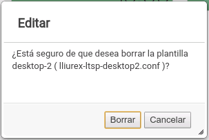 Para terminar tenemos la opción Eliminar, la cual borra una plantilla de la lista, aunque antes muestra un diálogo de confirmación: