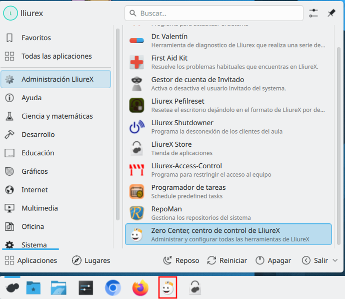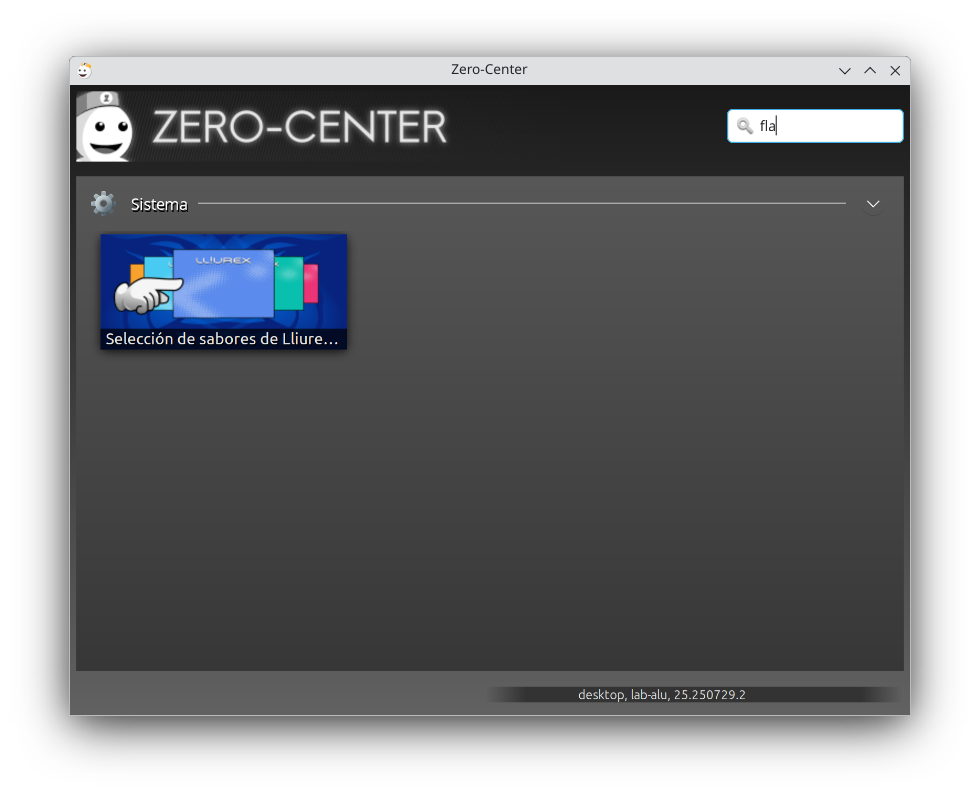 El acceso al Selector de Sabores se realiza desde el Zero-Center, para lo cúal se hará clic en Inicio: Administración LliureX: Zero-Center o directamente haciendo clic en el icono correspondiente de la barra del sistema.