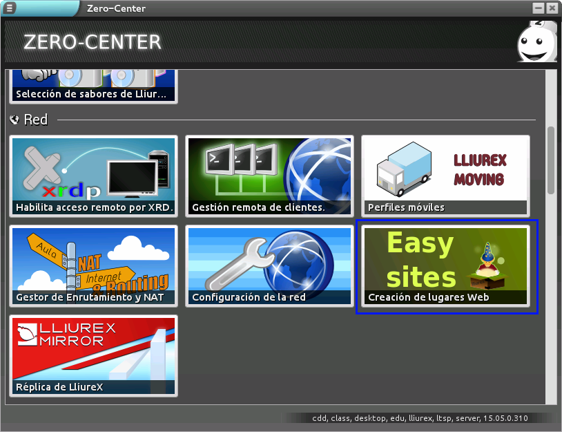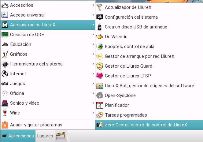 Esta aplicación viene instalada por defecto en todos los servidores, por lo que podemos acceder a través del Centro de control de Lliurex, ubicado en el menú: Aplicaciones -> Administración LliureX -> Zero Center, centro de control de LliureX.