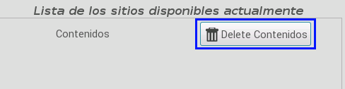 Se puede dar el caso contrario, es decir, que queramos eliminar un sitio creado para que deje de estar compartido. Para ello tenemos que buscar el sitio en el listado y, una vez encontrado, pulsar el botón Delete nombre_del_sitio_web (en el ejemplo es Delete Contenidos).