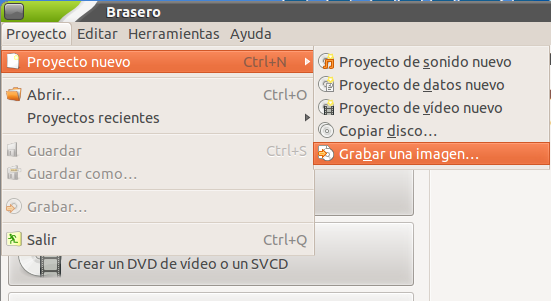Otra forma de acceder a la función de grabación de imágenes es mediante el menú Proyecto > Proyecto Nuevo > Grabar una imagen.