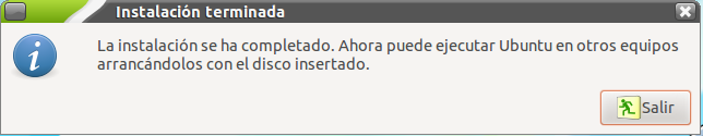Una vez se haya creado el disco USB se muestra una ventana como la siguiente, en la que debemos pulsar el botón Salir: