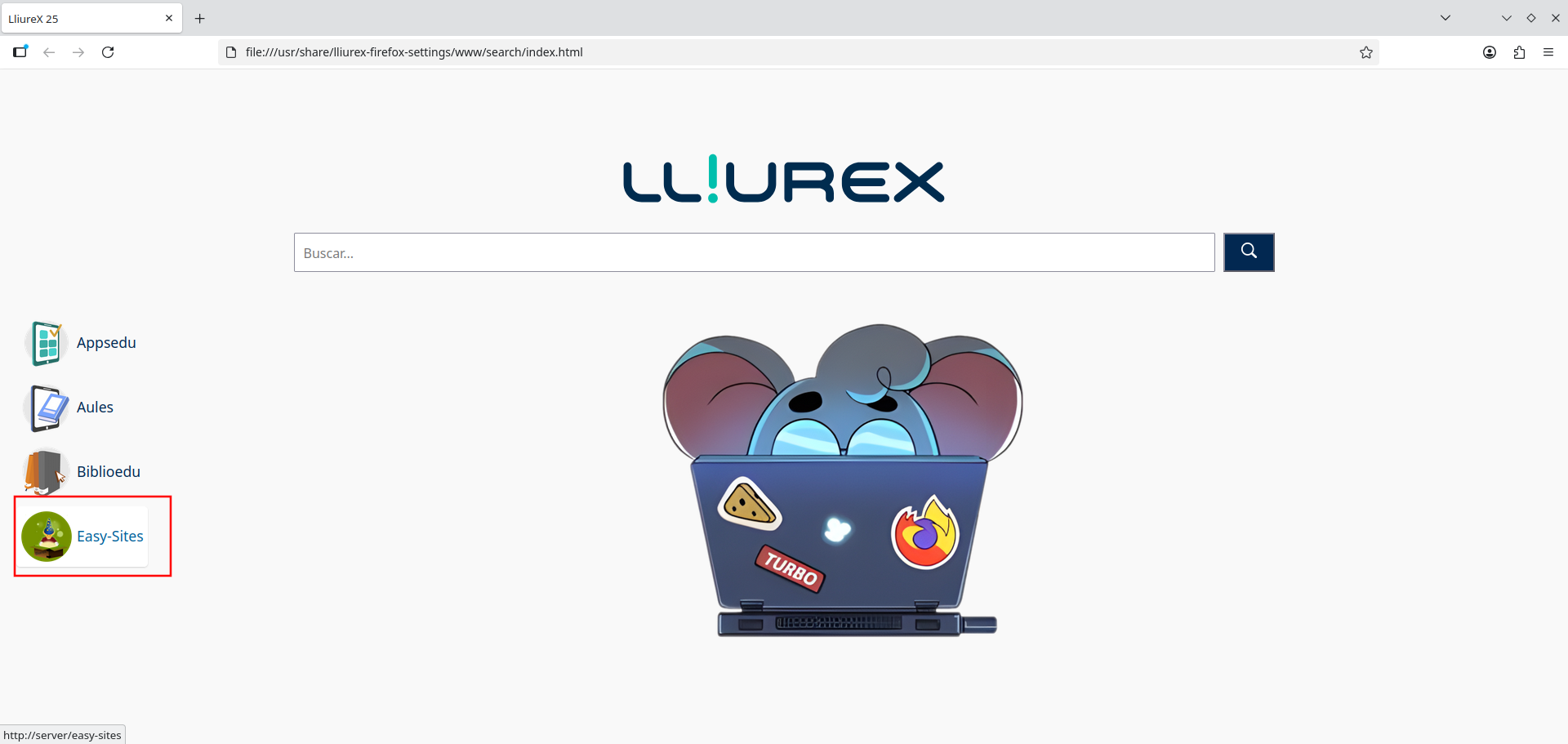Los equipos configurados para ser usados por el profesorado en las aulas LliureX sin servidor disponen de la aplicación Easy-Sites.