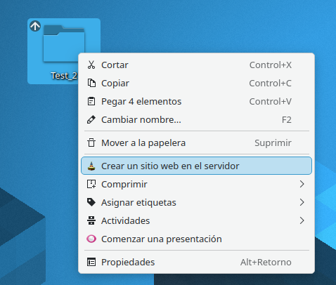 Para poder crear sitios de esta forma se hará clic con el botón derecho del ratón sobre la carpeta cuyo contenido se quiere mostrar con Easy-Sites y se hará clic en la opción Crear un sitio web en el servidor.