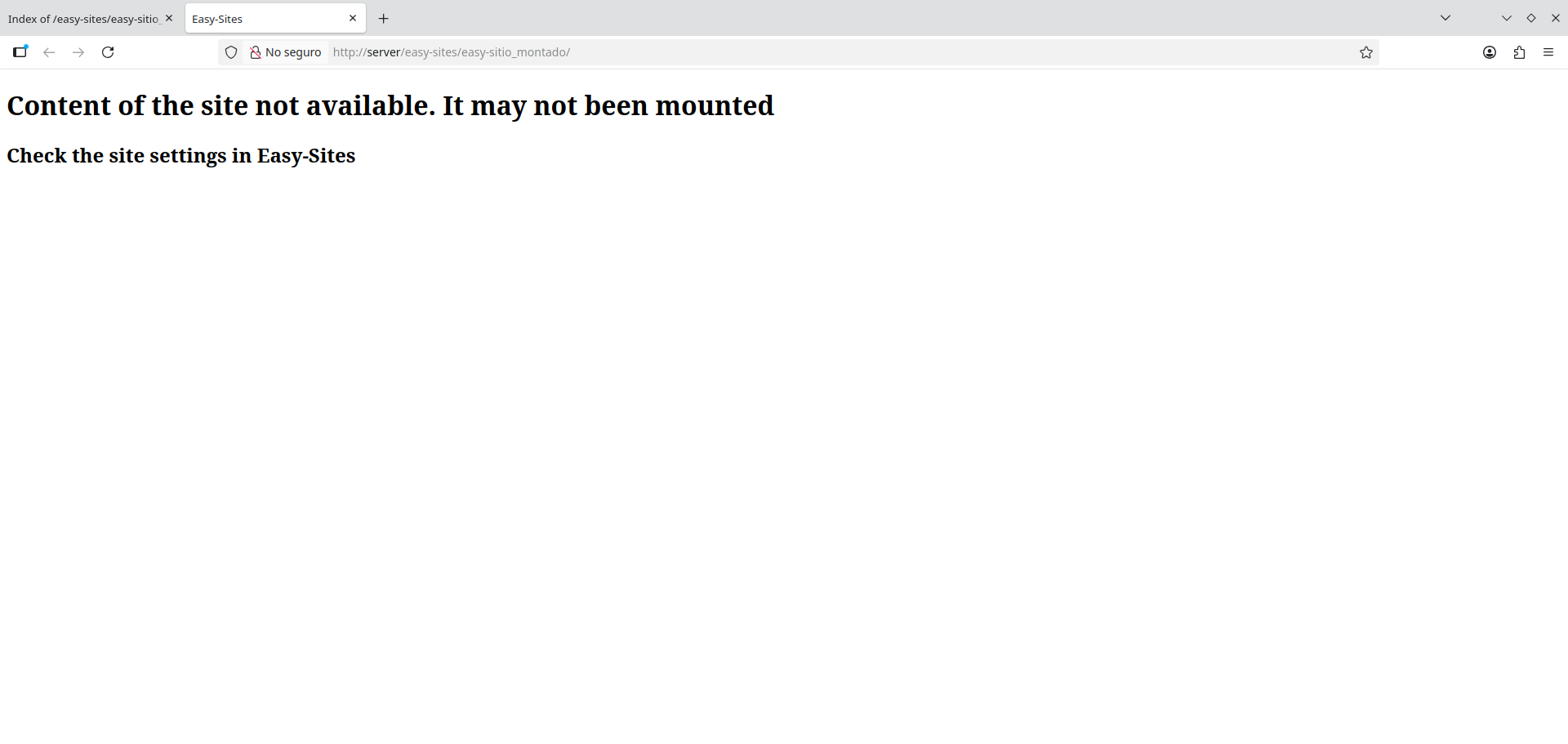 Si se accede a un sitio cuyo contenido no esté montado se mostrará el siguiente aviso