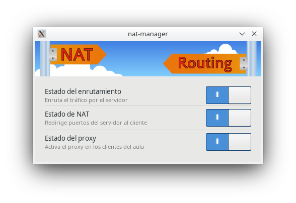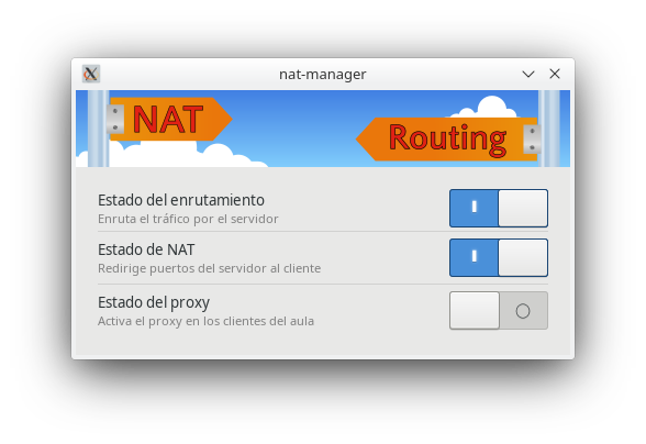Para habilitar y deshabilitar el proxy utilizando esta aplicación es necesario que las opciones de enrutamiento y NAT estén activadas.