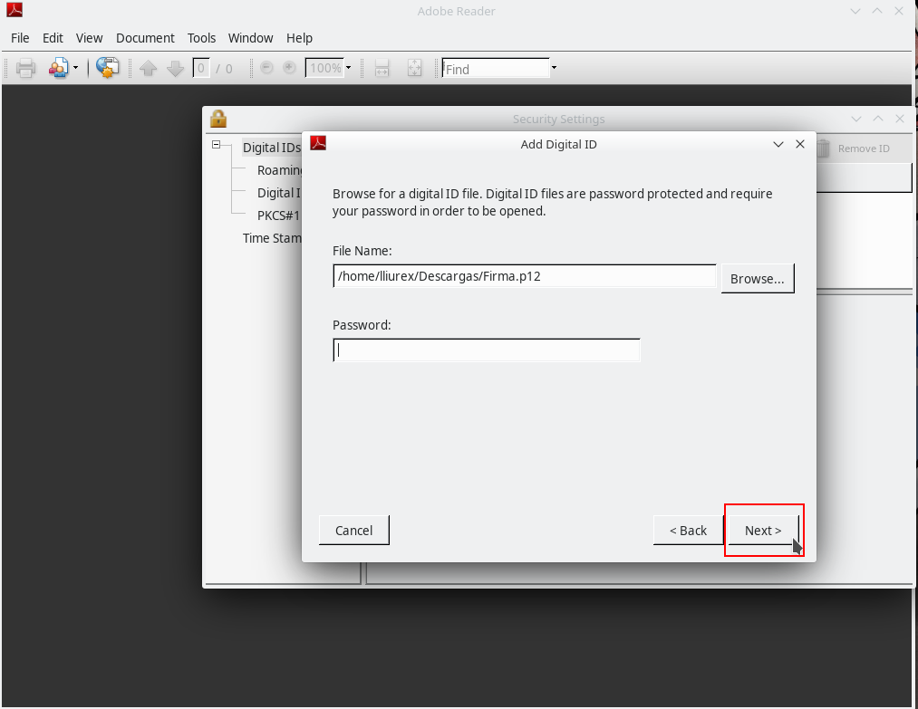 Importar certificado digital en Acrobat Reader