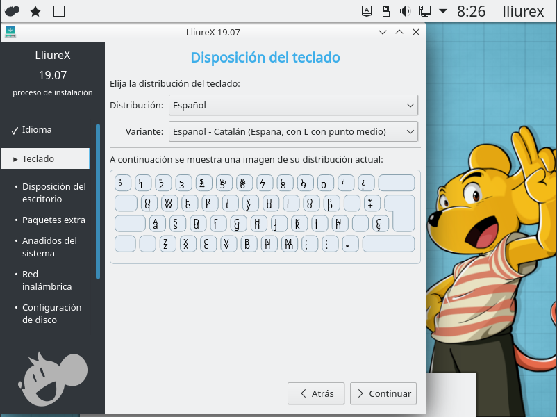 A continuación seleccionaremos la distribución de teclado. La opción que viene por defecto suele ser la correcta: