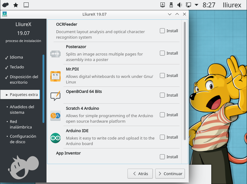 Tanto el software adicional como los servicios pueden ser instalados a posteriori una vez finalizado el proceso de instalación.