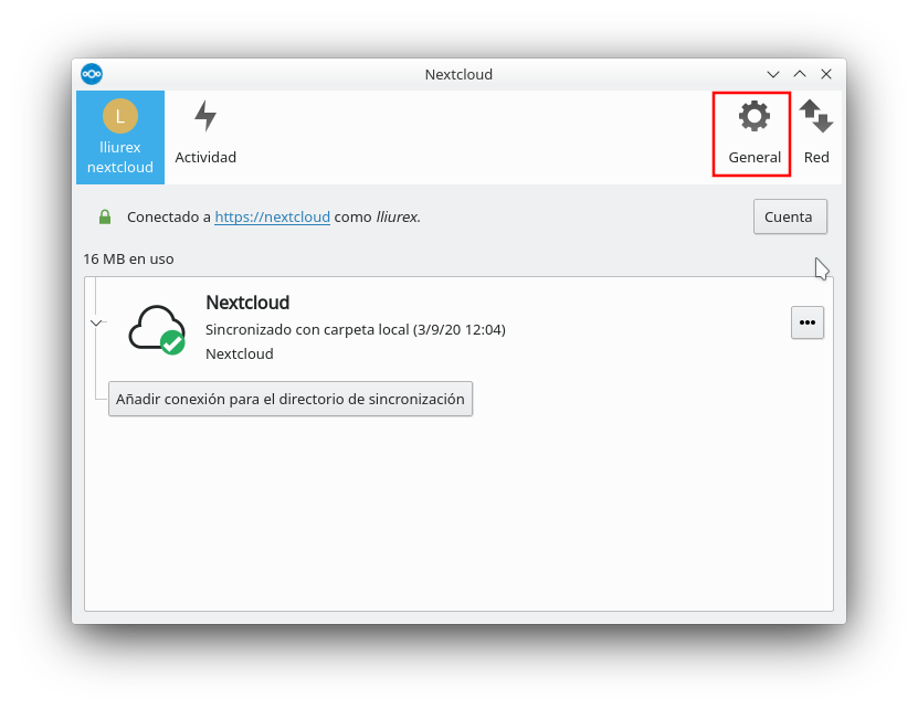 Si se hace clic directamente sobre el icono se mostrará la ventana de Nextcloud Desktop.