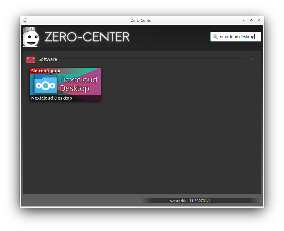 Para instalar Nextcloud Desktop en aquellos equipos desde donde se desee poder acceder al servidor de Nextcloud del centro se accederá al Zero-Center de cada uno de los equipos. En la sección “Software” del mismo se encuentra el zomando para instalar Nextcloud Desktop