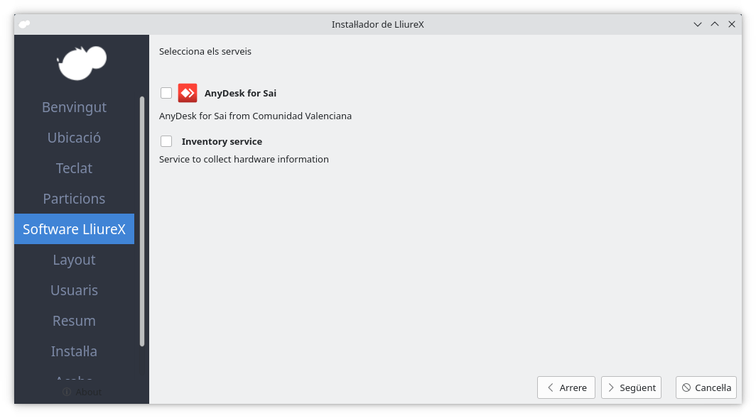 Tanto el software adicional como los servicios pueden ser instalados a posteriori una vez finalizado el proceso de instalación.