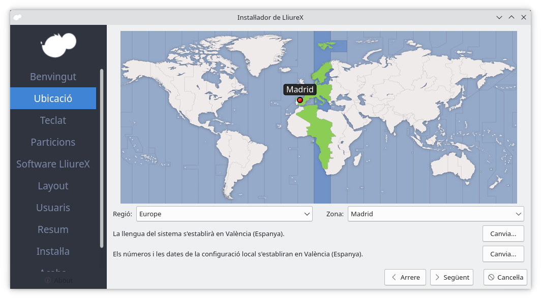Configurado el idioma, seleccionaremos el lugar donde nos encontramos. Normalmente la opción que viene por defecto es la correcta por lo que sólo habría que darle a siguiente: