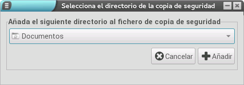 El primero paso para crear copias de respaldo consiste en seleccionar aquellos elementos (servicios) que queremos que se almacenen. Para ello pulsamos el checkbox Copia de seguridad de aquellos servicios a respaldar. Además, también podemos añadir carpetas adicionales (tanto personales, como /net) pulsando el botón Añadir carpeta. En caso de pulsarlo, se abre una ventana donde debemos elegir la carpeta y pulsar el botón Añadir.