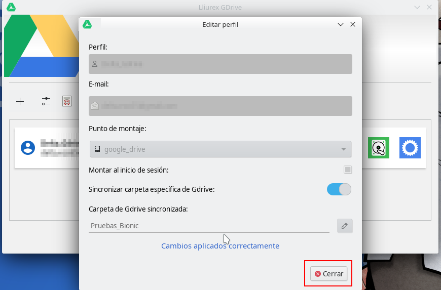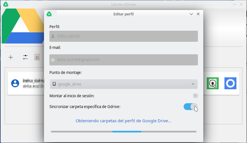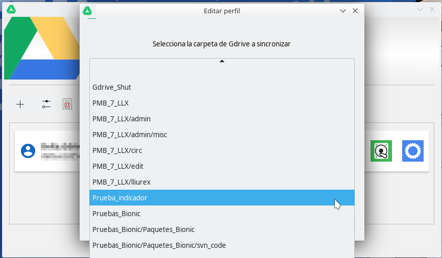 Si tenemos organizado el contenido de nuestra cuenta de Google Drive en carpetas, es posible indicar que carpeta de las existentes queremos sincronizar de forma que, en la carpeta montada, únicamente se muestre los archivos y subcarpetas de la carpeta de Google Drive especificada.