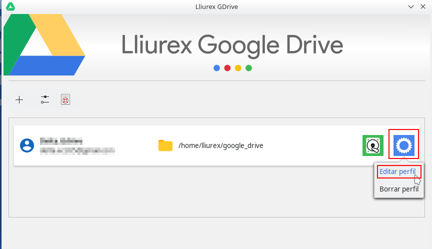 Para especificar la carpeta a sincronizar, en primer lugar accederemos a LliureX Drive y editaremos el perfil para el que queremos especificar la carpeta.