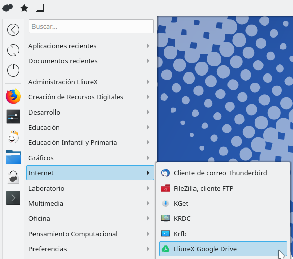 Para iniciar el LliureX Drive por primera vez, vamos a Menú>Internet