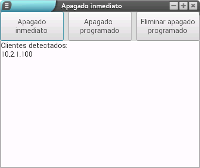 - Apagado inmediato: permite el apagado de los clientes en el momento en el que se selecciona.