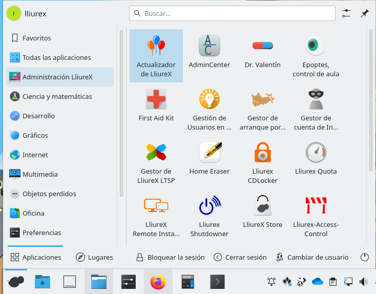 Lliurex-Up puede ejecutarse mediante el acceso disponible en la sección Administración de LliureX del menú de aplicaciones,