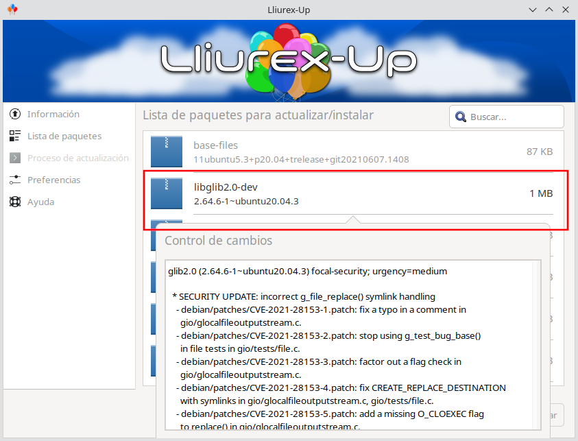 Haciendo clic en Lista de paquetes se puede consultar la lista de paquetes que incluye la nueva actualización: