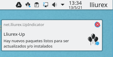 Lliurex-Up dispone de un indicador para la barra de menú con 2 funcionalidades: