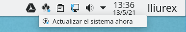 Si al iniciar sesión en un equipo el sistema detecta que existen actualizaciones disponibles, se mostrará una notificación informando de este hecho junto con un icono identificativo en la barra de menú: