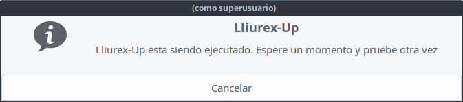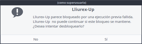 Si el bloqueo se resuelve correctamente, LliureX Up se reiniciará. En caso contrario, se mostrará un mensaje informativo