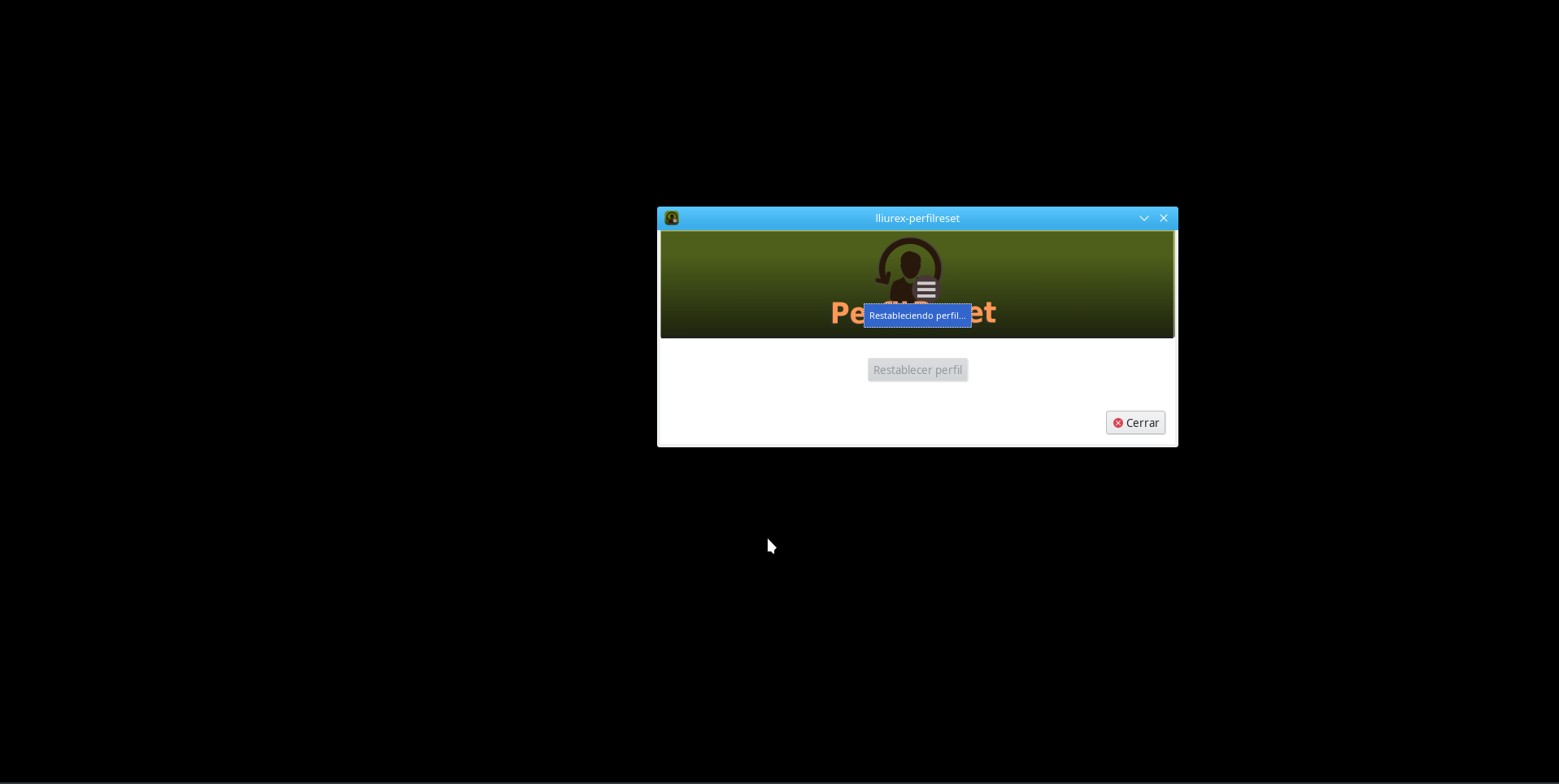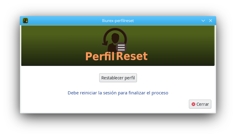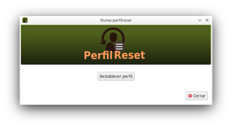 Para revertir de forma rápida y sencilla todos los cambios realizados en la configuración del Escritorio y volver a disponer de la configuración por defecto se dispone de la herramienta LliureX-PerfilReset.