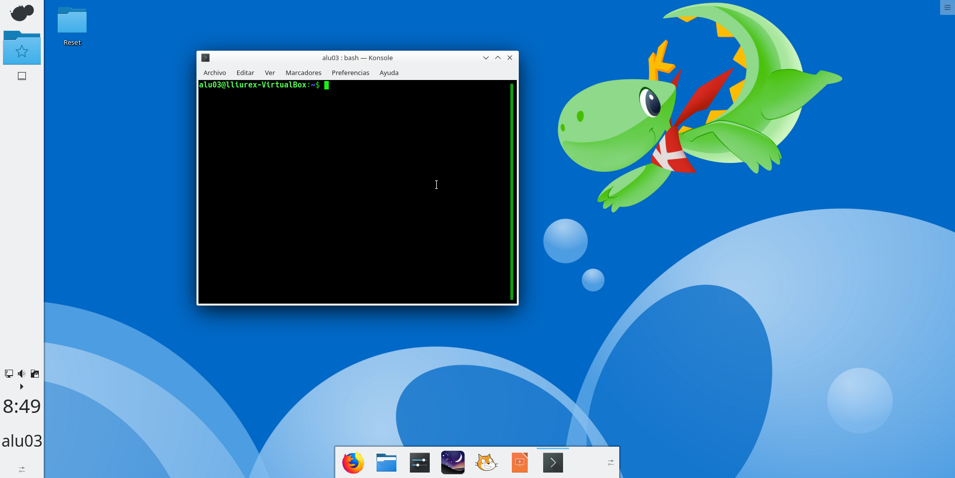 Tras reiniciar la sesión, el escritorio volverá a mostrar la configuración original por defecto.