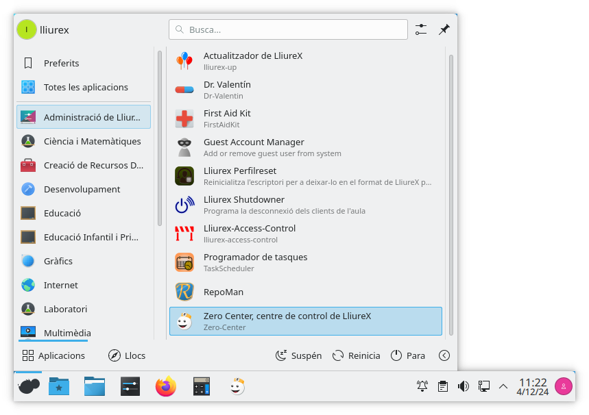 Para ejecutar la aplicación hay que acceder al Menú>Administración de Lliurex>Zero-Center.