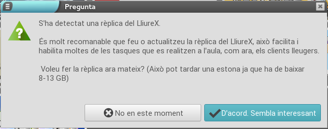 En cas d'utilitzar aquesta ferramenta en un servidor de LliureX, el programa ens oferirà també la possibilitat de generar o actualitzar la rèplica del repositori d'aplicacions del LliureX per a utilitzar-la a l'aula.