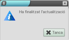 Una vegada l’actualització acabe, el programa avisa l’usuari a través d’una finestra de diàleg que en tancar-la, finalitza completament el programa.