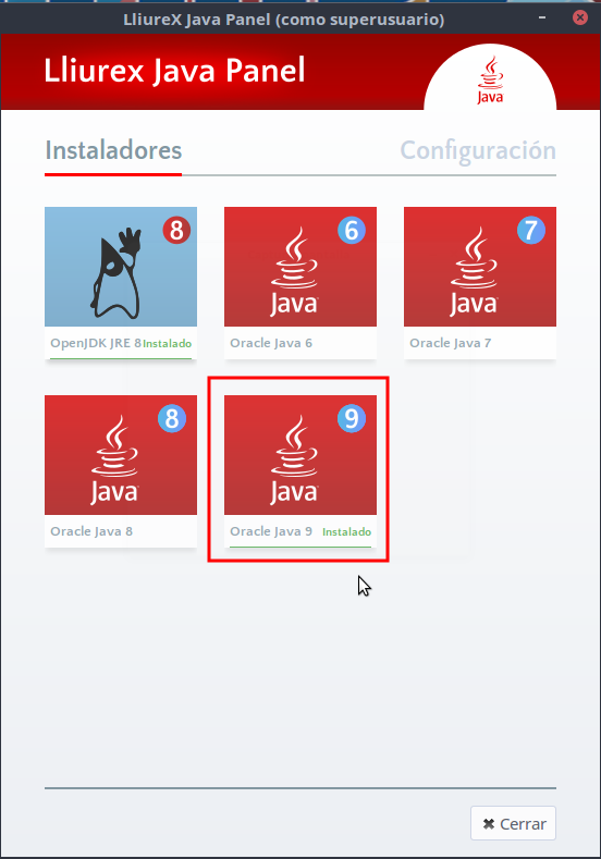 Cuando queramos utilizar Java en LliureX 16, hemos de tener en cuenta que, por defecto, tenemos instalado el OpenJDK JRE 8, que es la plataforma libre del lenguaje Java. Aunque es posible que nos podamos encontrar que algunas características funcionen en alguna versión de Java diferente, y por tanto , tengamos que utilizar una versión diferente. Instalar una nueva versón puede resultar tedioso y no siempre es una tarea sencilla. El LliureX Java Panel nos va a permitir poder instalar diferentes versiones de Java con suma facilidad y acceder al panel de control de cada una de las versiones, así como cambiar de versión cuando nos sea necesario.