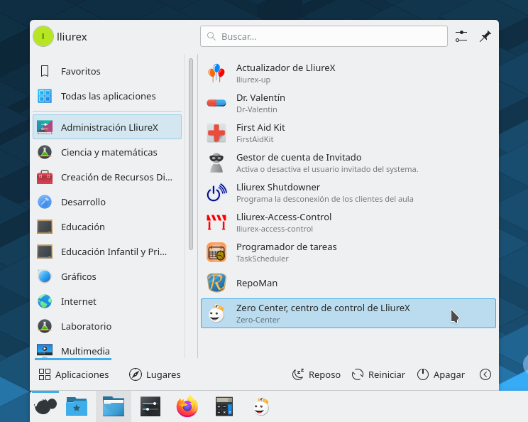 Para ejecutar la aplicación hay que acceder al Menú>Administración de Lliurex>Zero-Center.