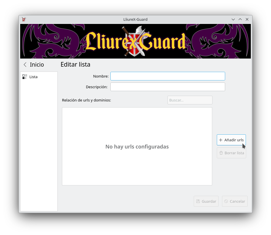 - Añadir lista personalizada: esta opción permite crear una nueva lista introducciendo de forma manual las direcciones y dominios web que se desean filtrar.