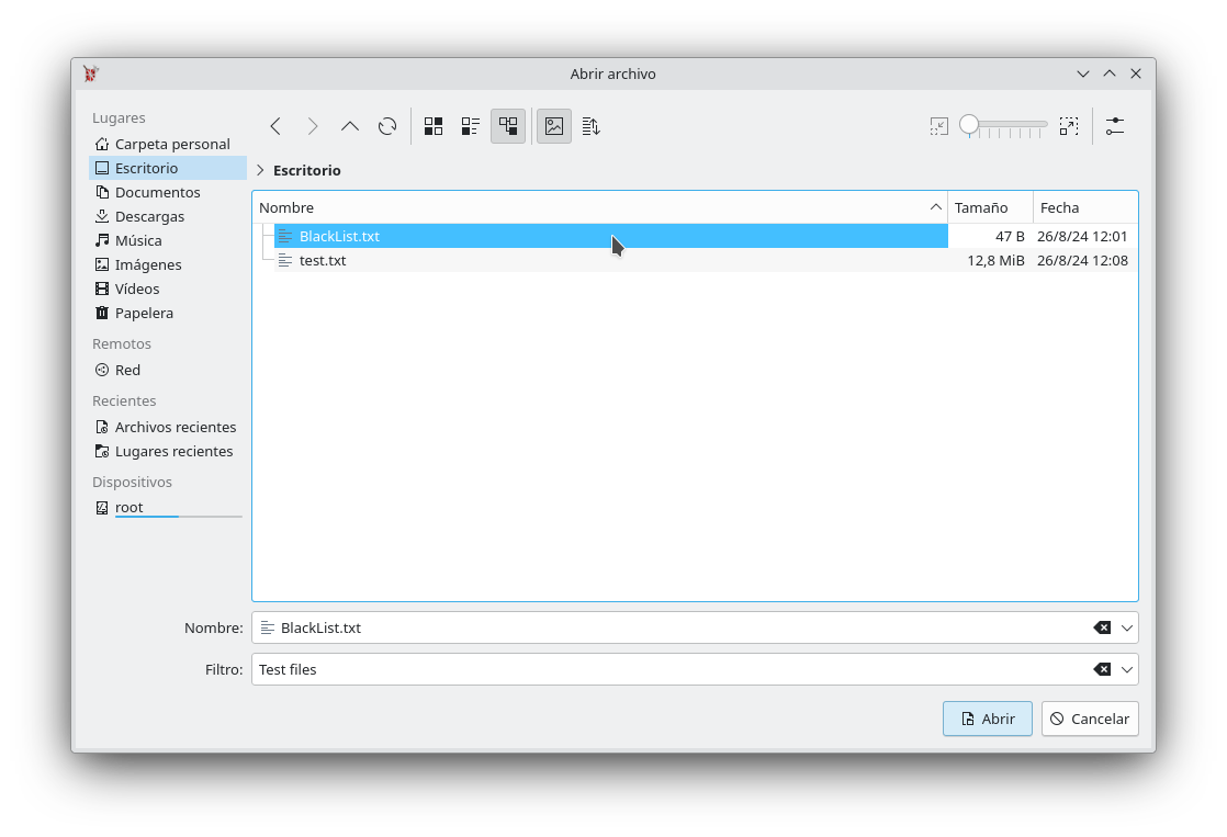 - Añadir lista personalizada mediante un fichero: mediante esta opción se puede crear una lista a partir de un fichero (en formato texto) descargado o generado previamente.