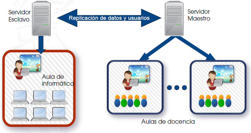 - Un servidor maestro: suele dar servicio al centro (aulas de docencia, sala del profesorado, etc.).