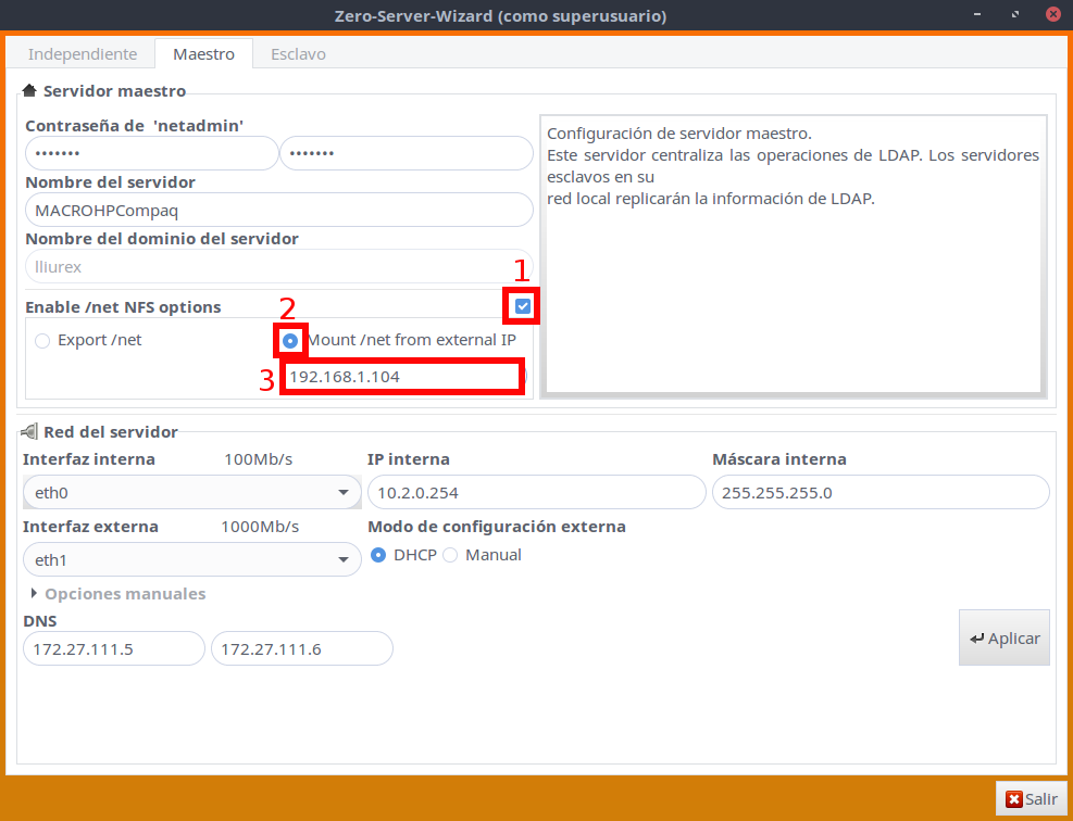 Primeramente hay que configurar el servidor maestro. Para ello tan solo hay que proporcionar la contraseña de netadmin.
