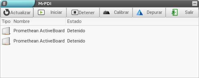 Tras calibrarla, tenemos que iniciarla para lo que debemos pulsar el botón Iniciar. Si, por el contrario, queremos detener el funcionamiento de la pizarra, solo hay que seleccionar el dispositivo a detener y pulsar el botón Detener.
