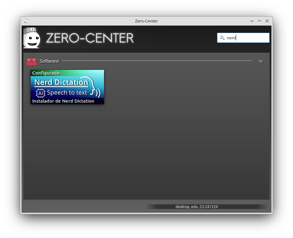Una vez seleccionado Zero Center, buscar "nerd" y seguir los pasos de la instalación.