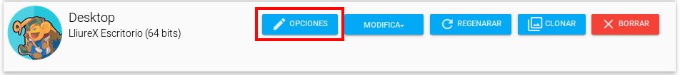 | Opciones de la imagen | son las opciones concretas para esa imagen,que podremos arrancar en diferentes clientes. |